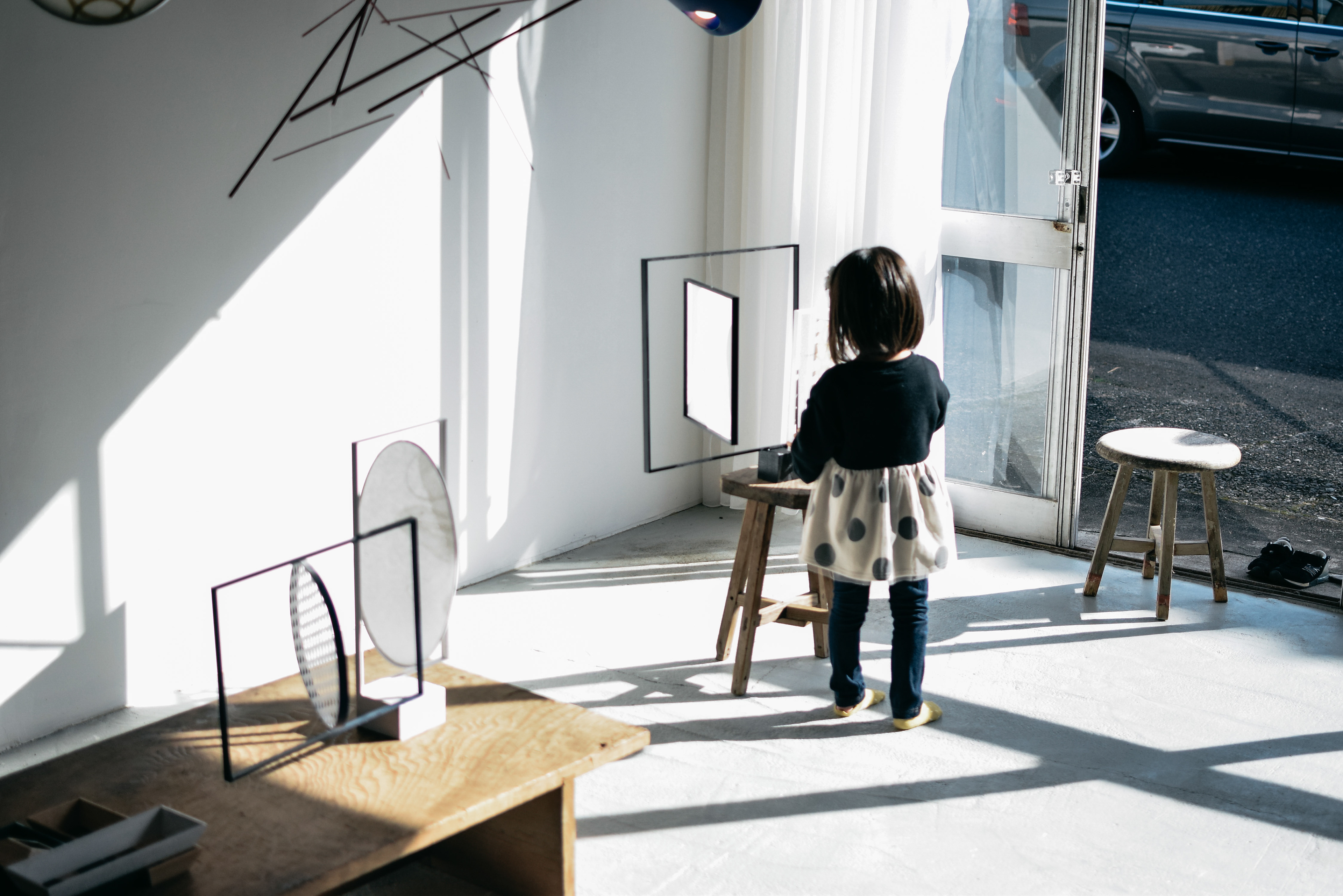 モビールの構造の基礎である木枠は河和田の角物木地を制作する井上徳木工さんに端材を提供いただき、プロトタイプを繰り返し制作した。